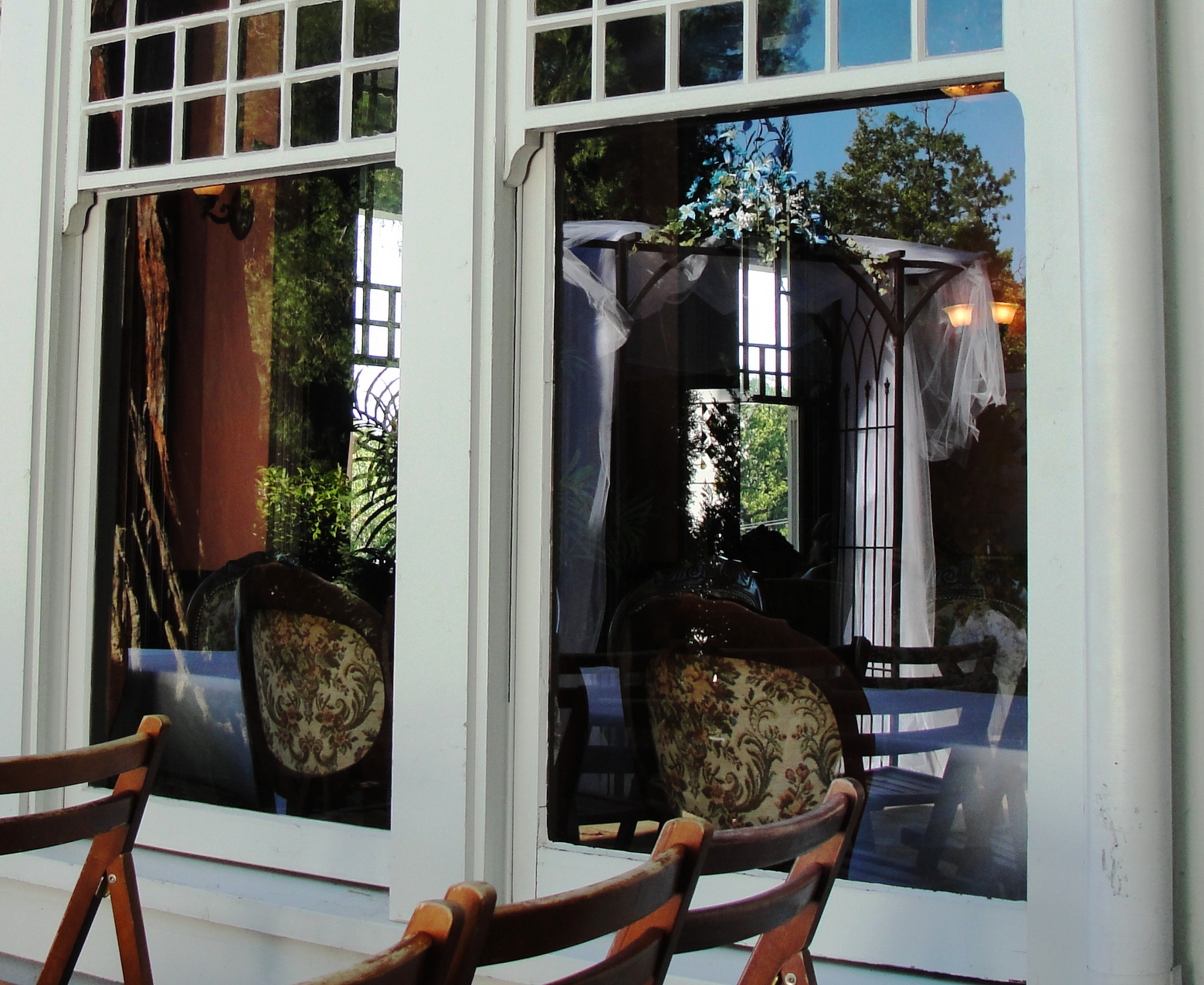 I love reflections, so will share a picture that I took of the wedding arch reflected in one of the windows.