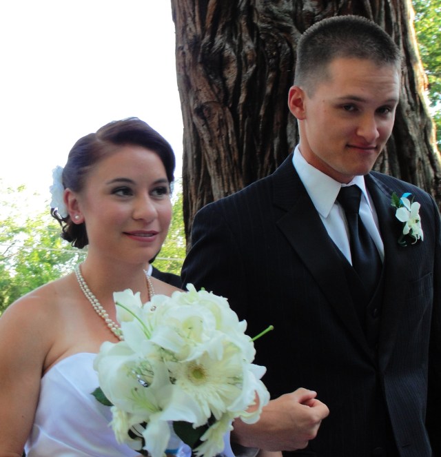 Here is a picture of the happy couple just after they were pronounced man and wife and had their first kiss as a married couple.