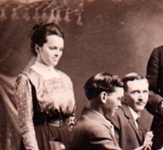 I clipped another piece out of the picture that has my great grandparents in it. Above Lottie you can see the lamp shade, but you can tell that it is part of the backdrop, and not an actual lamp. I also look at the picture of my Great Grandfather and I can see my Father in his face.