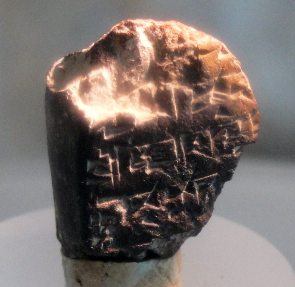 This small little fragment of a clay tablet has writing on it in the Akkadian language. It comes from the 14th century B.C. and is considered the oldest written document found in Jerusalem.