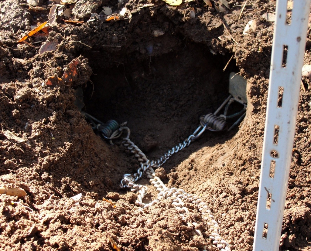 As we we were out for our walk we ran across some new gopher diggings. With the winter rains they are now active again expanding their tunnel systems. After the walk we returned with the required tools to capture the little critters.