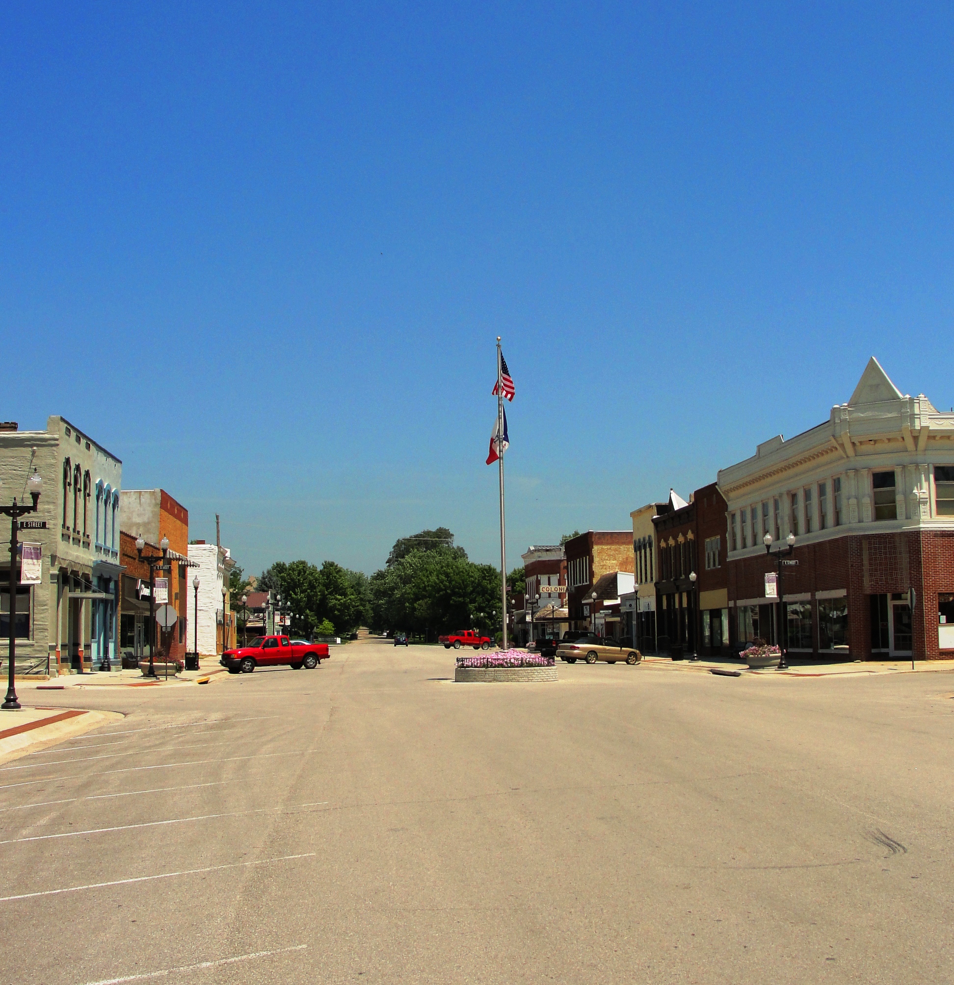 Hamburg, Iowa Main Street - Flagpole in intersection