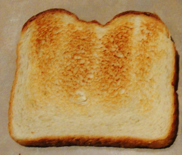 I popped a couple slices into the toaster. The results were definitely much better than the HyVee bread and more what I expected.