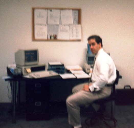 This picture is a bit blurry, but helps tell the story. If you read my post from last year, UA232 – Sioux City, I mention a colleague who was with me at the airport. Here is Jonathon sitting at his desk back at the office. Seeing the old computer and test equipment on his desk brings back some good memories.