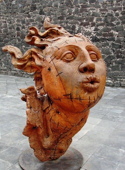 When we first entered the museum courtyard we saw some interesting wooden sculptures. I may have to do more research to find out the significance of this sculpture, but it is very intriguing. This is one of two wooden heads that are in the courtyard.