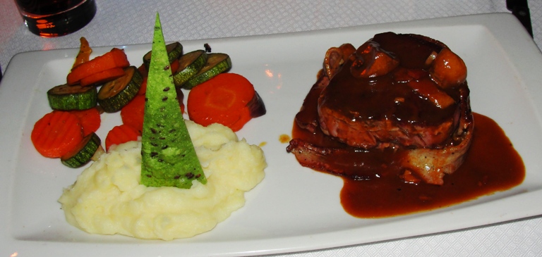 I ordered a small Filet Mignon. The presentation of the meal was very nice, but really didn’t matter much as the lighting in the restaurant is very subdued. The best part of the plate was the mashed potatoes. They were really delicious. The steak was nothing special, but you must keep in mind that I grew up in cattle country.