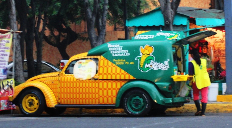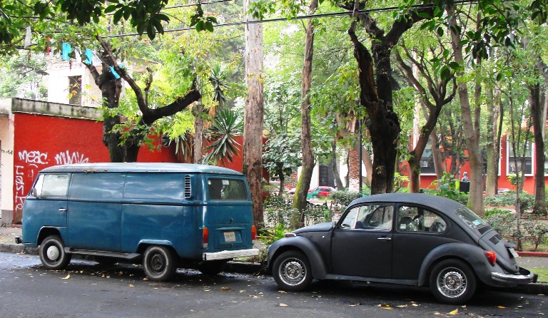 If you don’t like the bright colors, here is a dark gray Beetle for you. You also see an old VW van. You see a lot of these in Mexico City also. I am sure that the American Pickers would have a great time exploring Mexico City looking for VW vans.