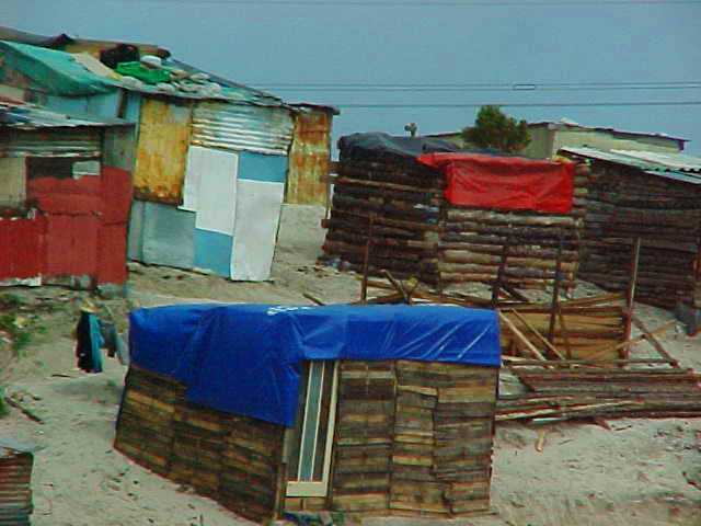 Here we have a closer look at another shanty town where we can see how the buildings are constructed. You can see that they use whatever they have available to build with.