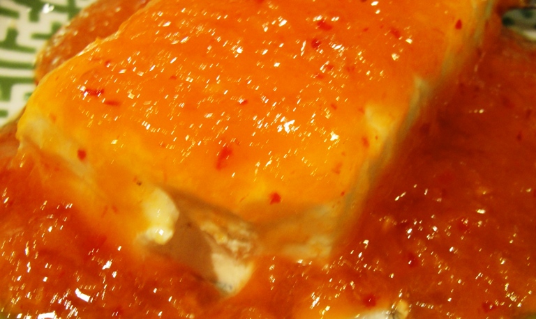 In the middle we have nice soft cream cheese covered with Apricot Pepper sauce.