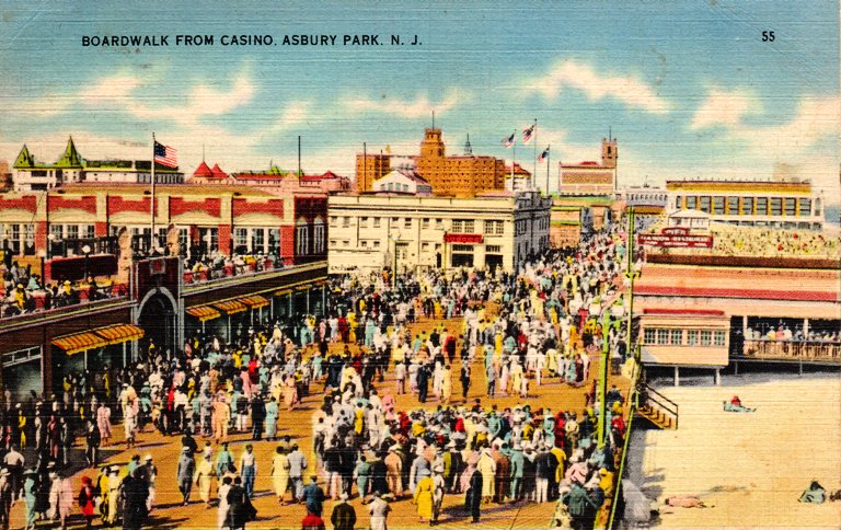 I looked up Asbury Park and found that it was a popular Jersey Shore resort until the 1950’s. The construction of the Garden State Parkway shifted traffic and development away from the seashore.