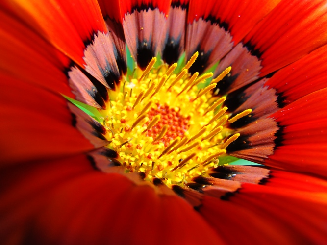 I really like the coloring of this daisy. The reds and yellows have a nice contrast. The center of this bloom is just beautiful.