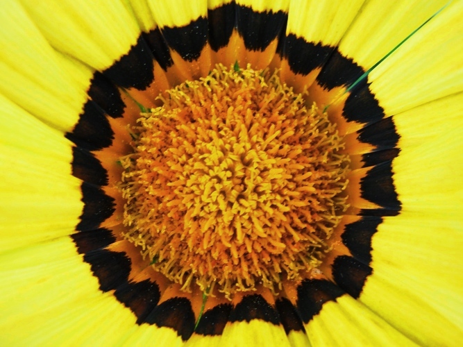Here is the center of a yellow daisy. The colors are not as vibrant as the first picture above, but I really like the detail in the center of this daisy. The yellow and brown tones are also an interesting contrast. I also really like the symmetry in this bloom.