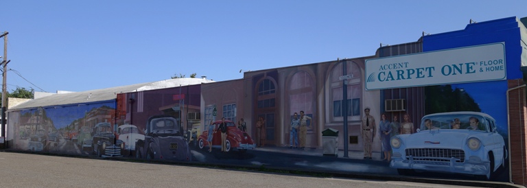 The setting is Yosemite Avenue which was the main drag through Manteca. The mural brought back memories of cruising Main back in my hometown, although a few decades later ๐
