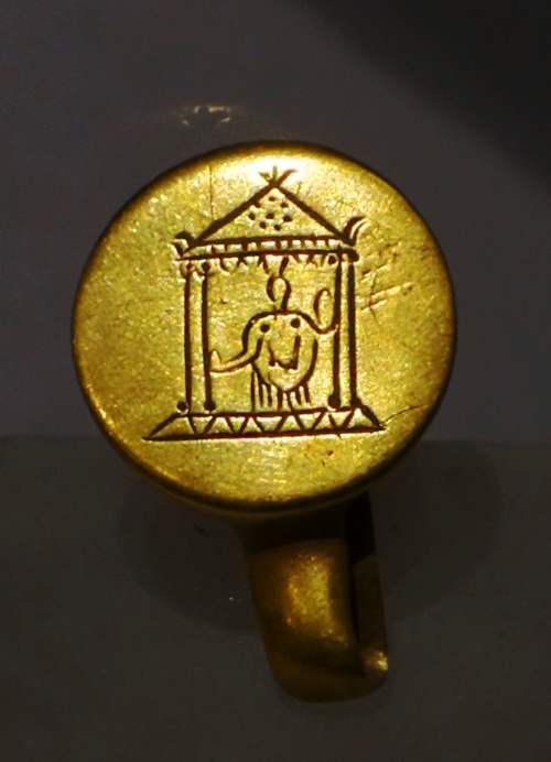 gold ring - Cybele at Temple Entrance - Museum of Anatolian CivilizationsThe one hall that we were able to visit had a lot of interesting artifacts. My favorite was this gold ring that shows Cybele standing at the temple entrance. The temple would be the one that is shown above.