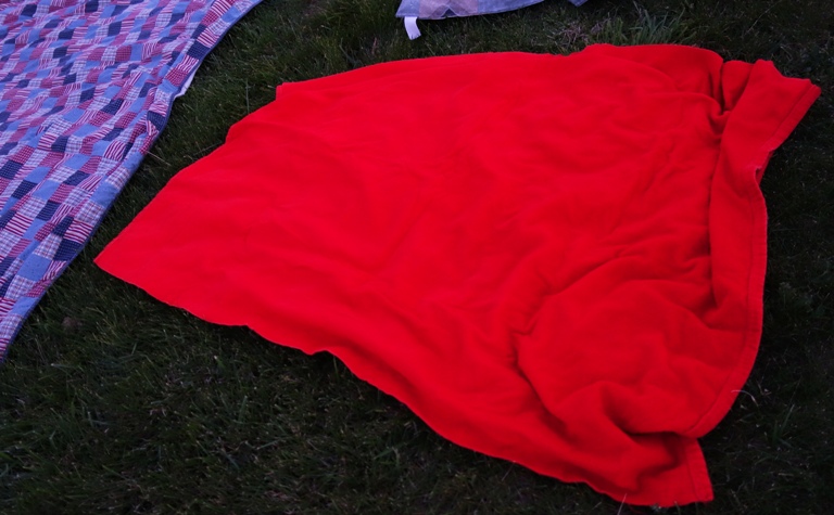 I spread out my red blanket. Not sure if I should call it a blanket as the original use of this item was a table cloth. You can find it being used for that purpose in my post yesterday: Cake Time
