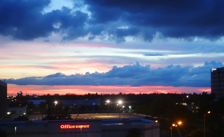 Miami Sunset, Sunset with Clouds, Florida sunset, Miami, FloridaWhile trying to get a blog post together, I was able to experience a beautiful sunset from my hotel room. The threatening clouds in the sky were an interesting contrast to the red of the setting sun.