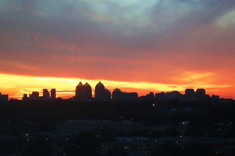 I caught a nice sunset from my hotel room at the Westin Prince hotel here in Toronto. You can see that the sky is starting to fill with color.