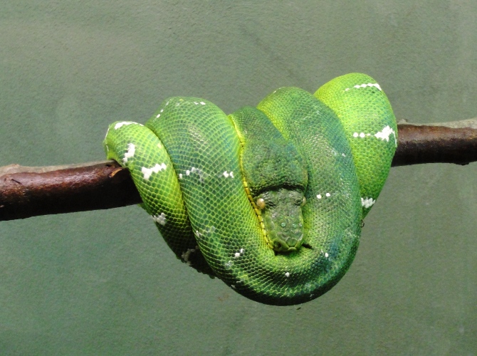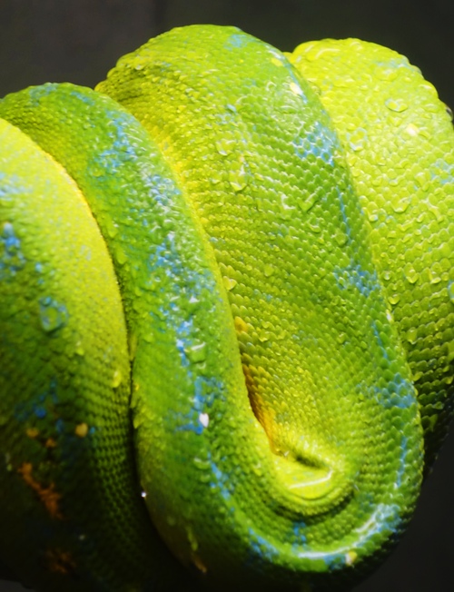 I will start with the one that I shared in the creepy critters post. This is a Green Tree Python (Morelia viridis).