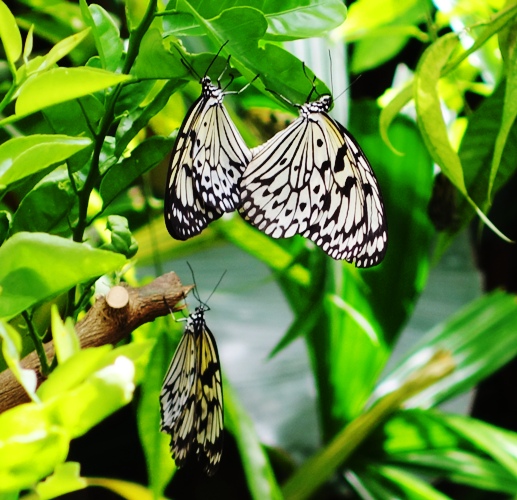Paper Kite Butterflies, Idea leuconoe, Toronto Zoo, Maylayan Woods PavilionThe butterfly is not entirely black and white. You can see a slight yellow tinge to the wings. Because of their coloring they are also known as Rice Paper butterflies.