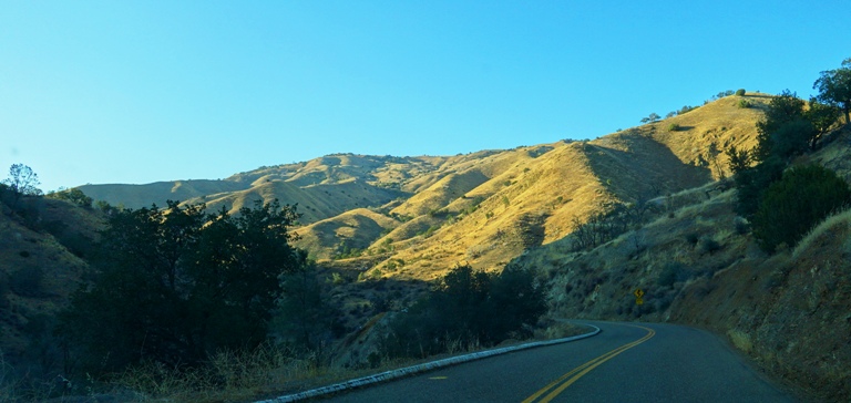 I really like this picture as the foreground is all in the shade and the hills ahead are highlighted by the setting sun. I really like the golden color of the hills.