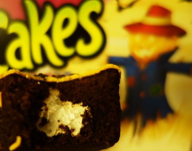 Here is a good look at the S’Cream filling. No change from a regular Cup Cake, just a nice marketing phrase. However, I am wondering how it would taste with the Orange S’Cream filling from the Halloween Twinkies.