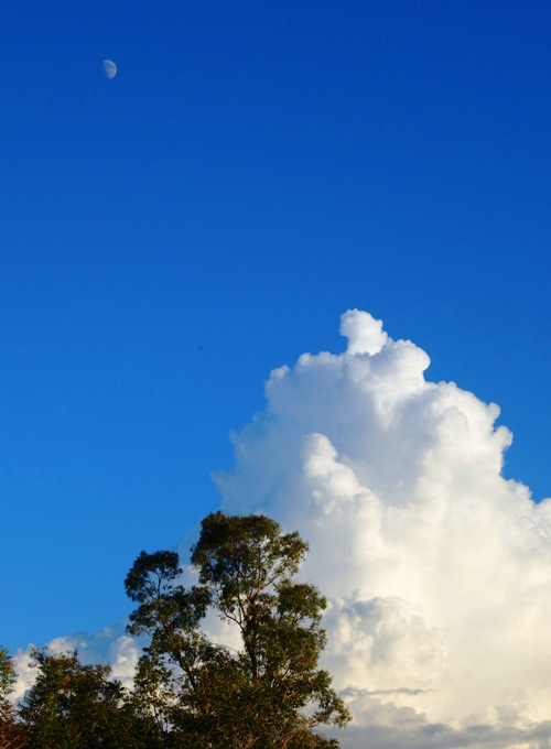 I will start with this fluffy white stack of clouds. They are nicely contrasted with the Eucalyptus trees in front and the beautiful blue sky.