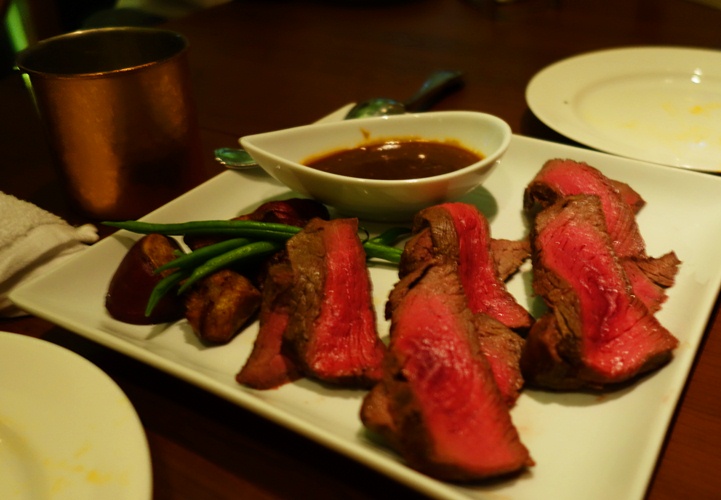 The next dish in line had some very nice slices of beef. They were served with a nice sauce, green beans and sweet potatoes. The beef was very tender and had nice flavor.