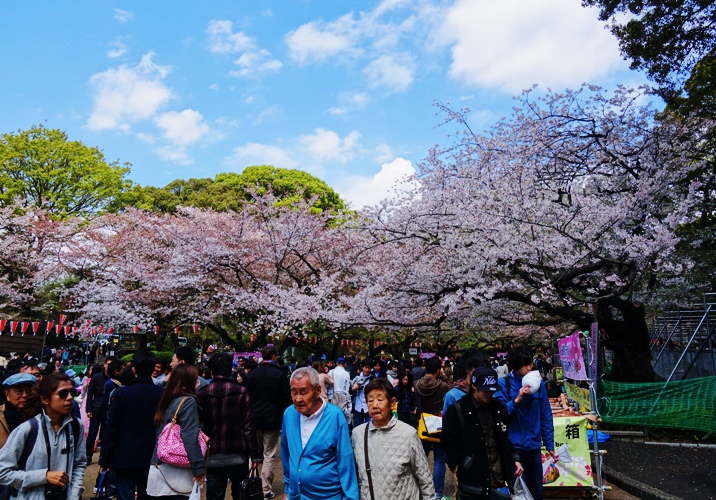 You can see that the paths still have a lot of people, but they are not as packed as they were during the Cherry Blossom time.