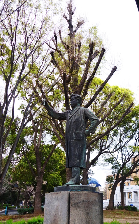 Here is a a statue of Hideyo Noguchi that I took in April. The trees are greening up , but you can still see the branches.