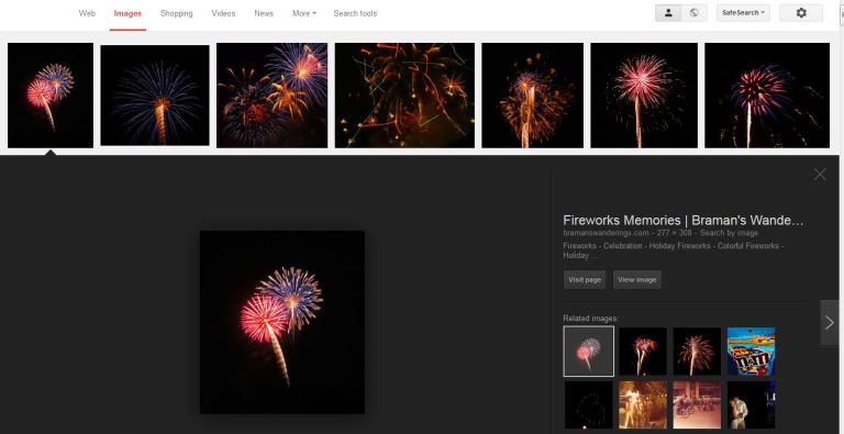 The picture above is what drew most people to the blog post. During the time when I got the most traffic this image showed up near the top in Google image searches for fireworks.