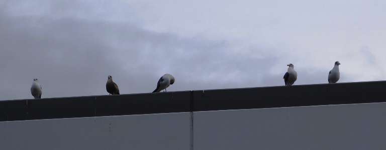 I will start with a picture that I took last week as I arrived at work. For some reason each morning there have been seagulls perched on the edge of the roof.