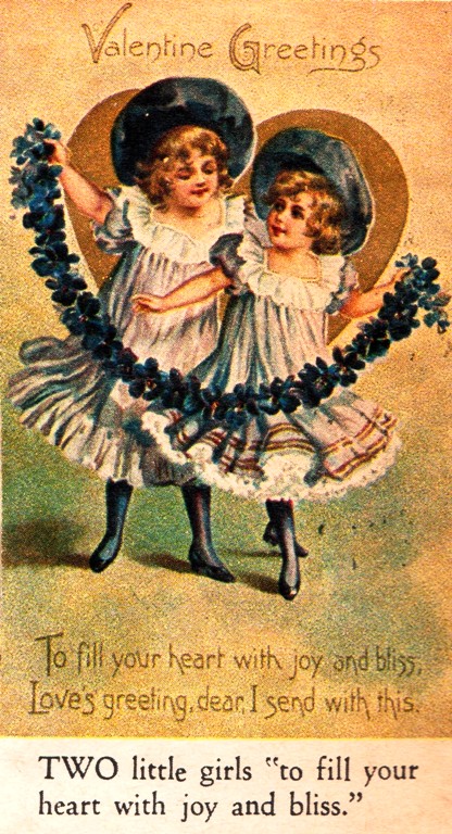 Century Old Valentine - Two Girls - Valentines Greetings - Old CardsOf course February brings Valentine’s Day.