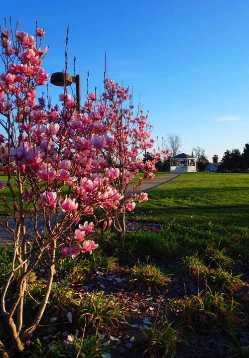 I like this picture that shows one of the Magnolia trees with a gazebo in the background. There is a similar picture in my post Saturday Evening Walk that is taken from another direction.