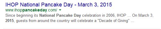 However, there were other entries that showed that the IHOP National Pancake was on March 3, 2015.