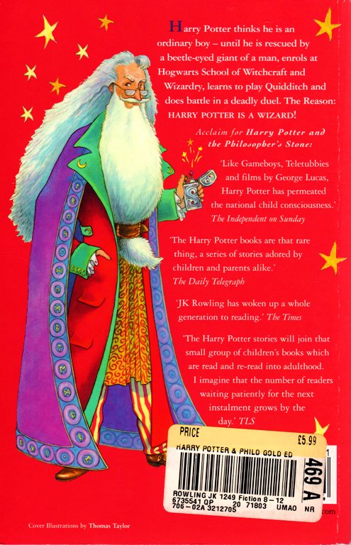 Of course the first copy of the book that I acquired was one that I bought when I lived in Kansas City. Above is the front cover of the American English edition. Note that the title is Harry Potter and the Sorcerer’s Stone.