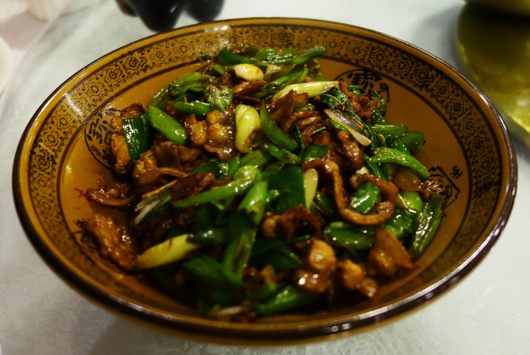 I think this might have been chicken stomachs with some interesting mushrooms and greens.