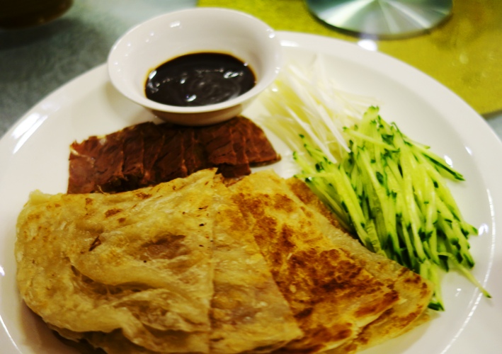 This was another nice dish. For this one you would take the pancake and spread some duck sauce on it. You would then add a piece of duck and the greens and fold it up. Similar to the way you would eat fajitas.