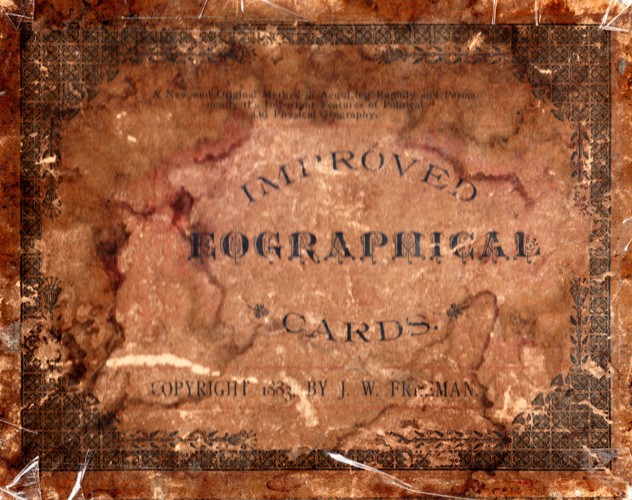 The box of this set of Improved Geographical Cards is not in the best shape. In fact you can see that the ‘G’ is missing from the title. The cards are copyright 1883 by J.W. Freeman.