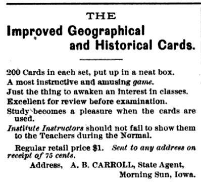 I hope you enjoyed this glimpse into a 132 year old educational aid. Look for additional glimpses in the future.
