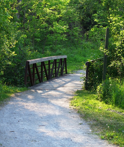 In the park are several bridges over the river and streams. This small bridge is over a small stream that flows into the Humber River.