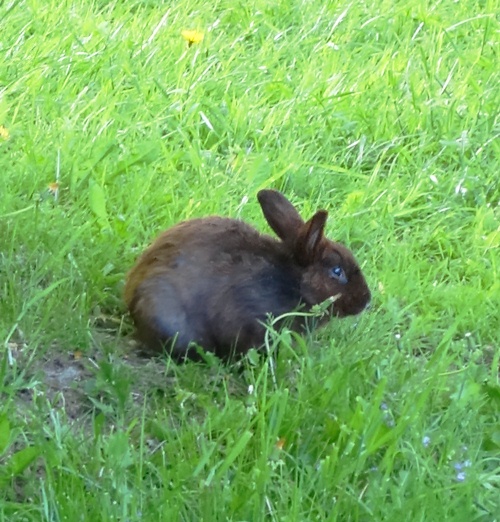 Rabbit, Park, Tame Rabbit, Rowntree Mills Park, TorontoWe also saw a dark colored rabbit. This doesn’t look like a wild rabbit, but rather a domestic one that has gotten loose. One of my friends was able to get close to it and even reach out to pet it.