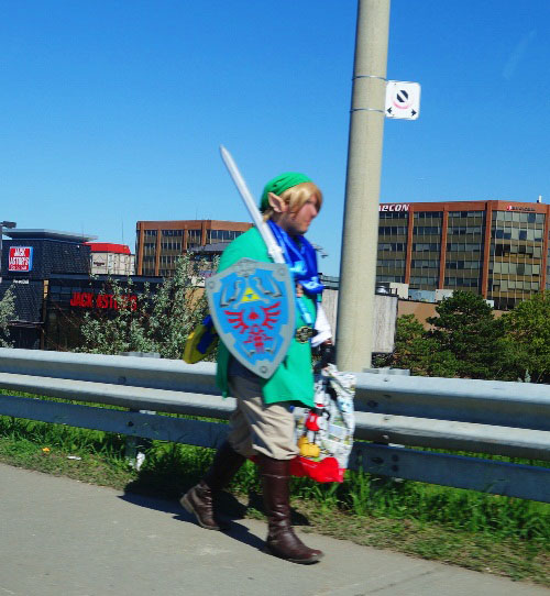 Many of the attendees were dressed up in costumes. Here is a young man dressed up as Link from the Legend of Zelda.