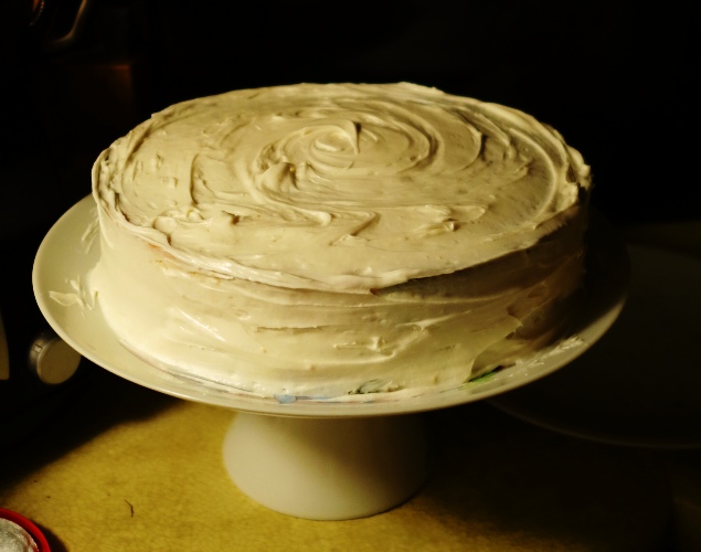 White Cake, Layer Cake, White Frosting, Colorful CakeThe two layers were then stacked and the cake was finished with white frosting. The cake looked very simple but it also hid a surprise waiting to be revealed.