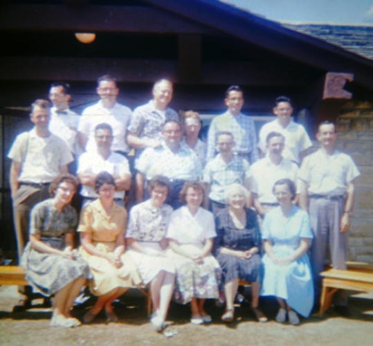 Here is another picture of teachers and cooks from the camp. In this picture Bill is in the middle of the back row. As I look at this picture I have memories of some of these men as they taught me years later when I was in summer Bible Camp.