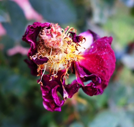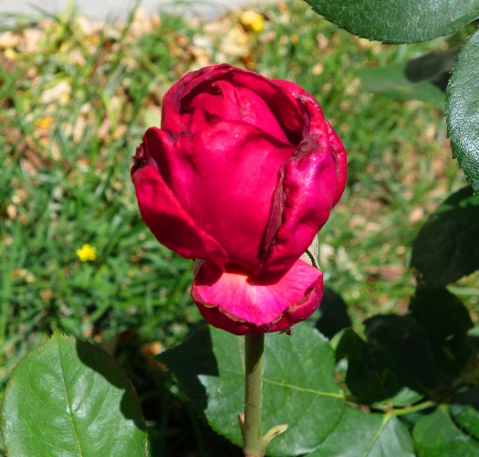 With the exception of the first picture these are all of the same rose bloom. My new Mister Lincoln rose blooms do not last very long. They bloom quickly and fade even quicker.