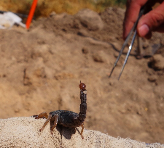 While digging in our squares at Lachish we always had to be on the lookout for scorpions. We were warned to always be careful when removing rocks and to watch out for scorpion nests.