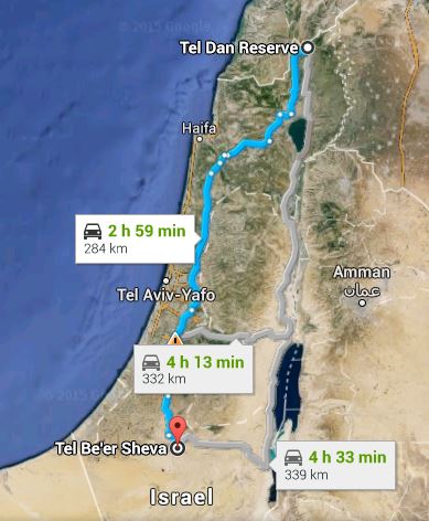 There were several suggested routes between Tel Be’er Sheva and the Tel Dan Reserve. Using the new north/south highway 6 it would only take about three hours to make the journey.