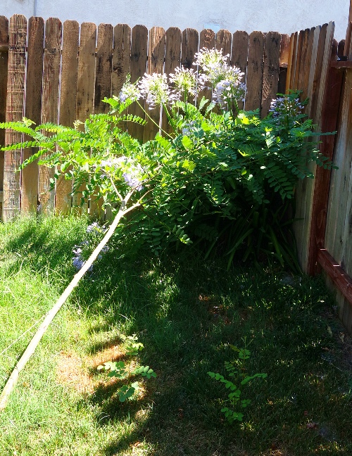 Especially as one of my trees was laying over into my agapanthus. One of the stakes that I had used as a tie down for the tree had come loose and the tree toppled.