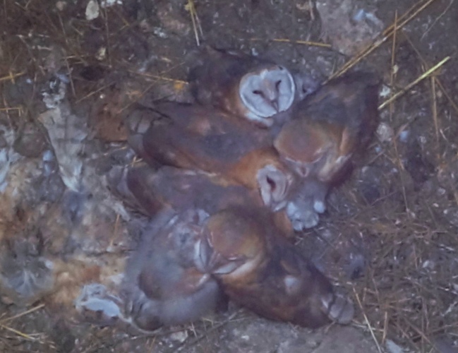 The barn owls are great birds to have in an orchard as they help keep down the rodent population.