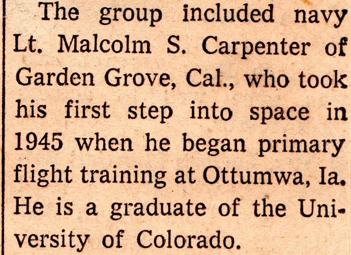 The pilot who trained in Iowa was Malcolm S. Carpenter who was better known as Scott Carpenter.
